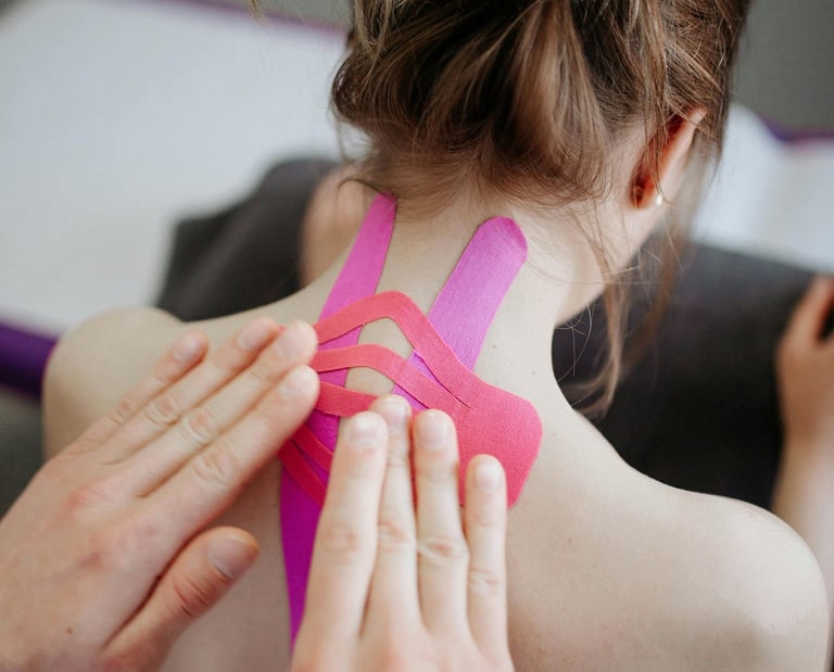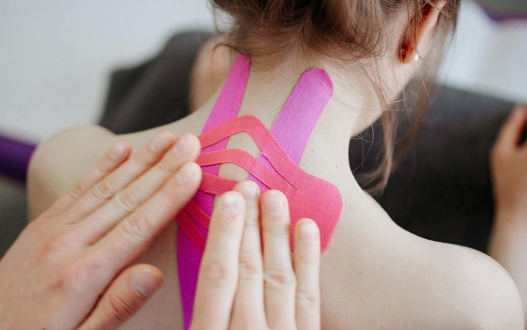 Kinesiotaping is a versatile tool and can be used for various conditions, from sports injuries to chronic pain. This technique involves applying a special elastic tape to the skin, which can aid in pain relief, reduce swelling, postural cuing, and enhance mobility. Additionally, the tape can be used to help improve circulation and lymphatic drainage, promoting faster healing.